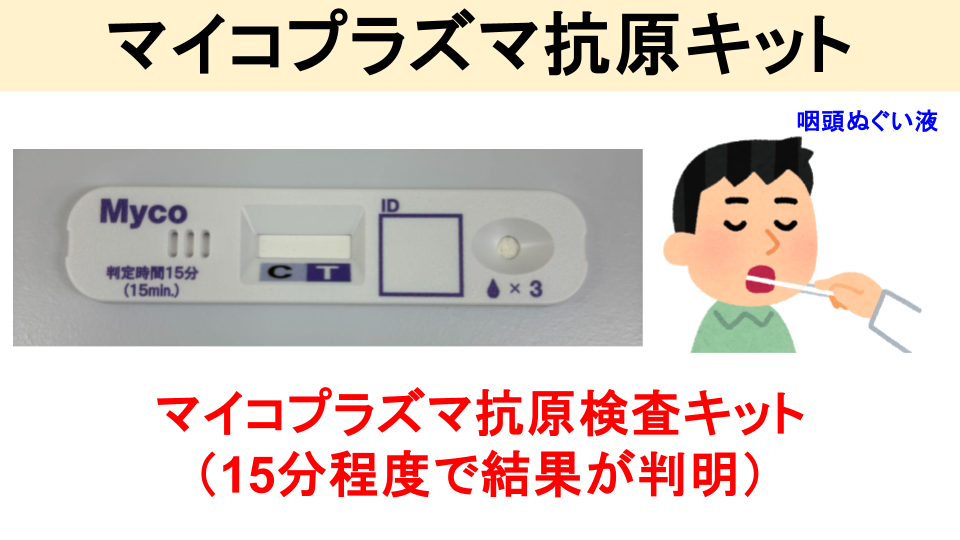 インフルエンザ、新型コロナウイルス(COVID-19)、マイコプラズマ、溶連菌、肺炎球菌、レジオネラ菌などは抗原検査を実施しております。5-10分程度で検査結果が判明します。