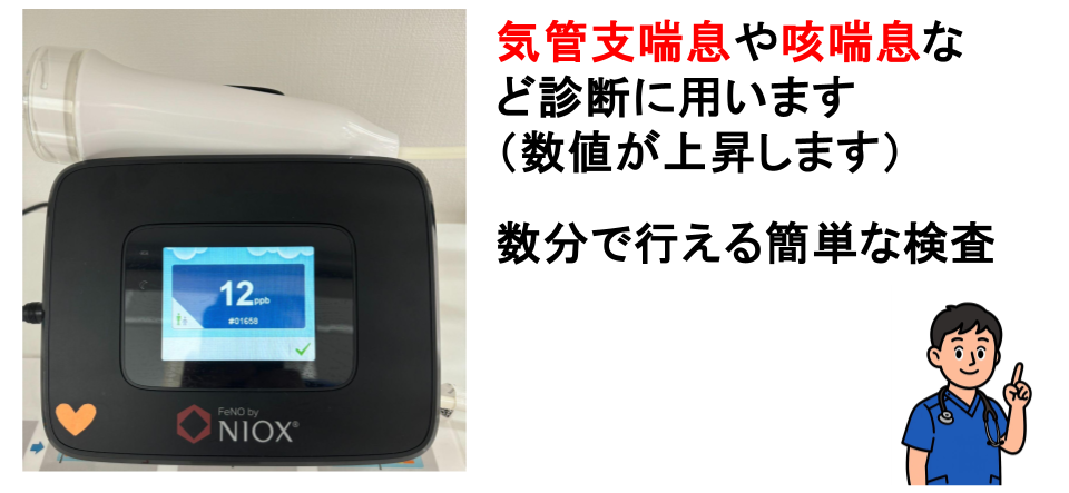 当院では、痰の色・量・粘り・持続期間 などを確認し、必要に応じて胸部X線・CT・呼吸機能検査・呼気NO検査、を組み合わせ、原因を調べます。
